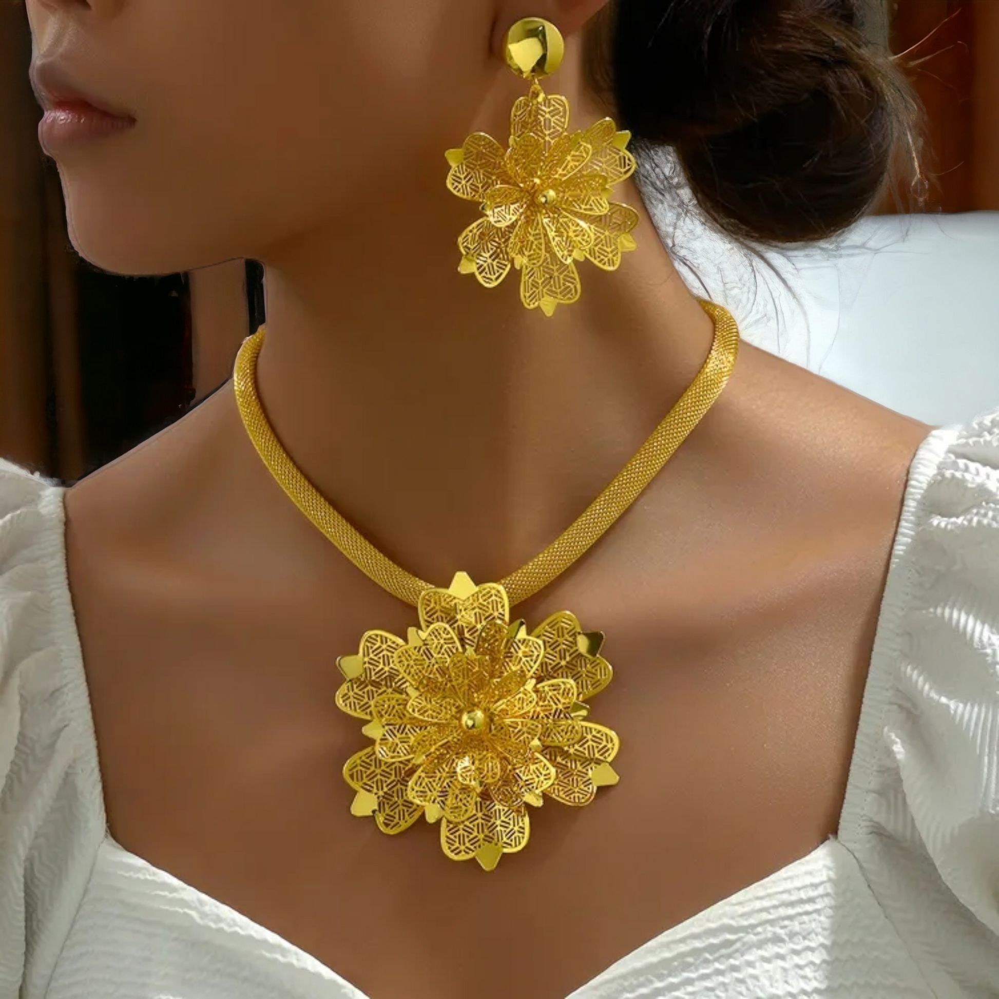 Ensemble de Bijoux collier et boucle d'oreilles en Or plaqué 18k.