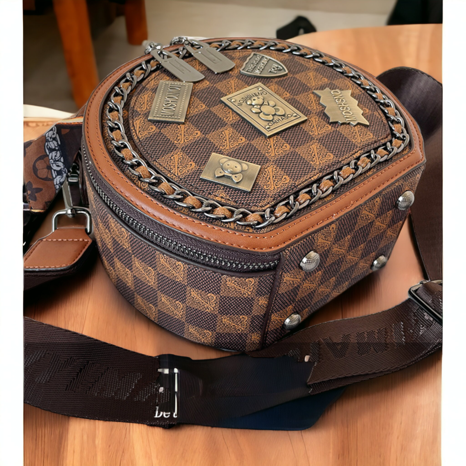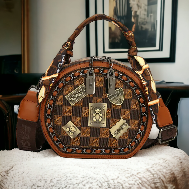 Sac à main Rond en Cuir vintage avec fermeture éclair. Collection 2023